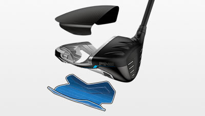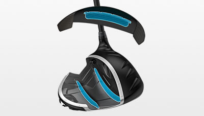 Advanced Aerodynamics | Sound Design A composite crown bridge and sole ribs attached to the crown and sole improve sound with a more muted and solid impact experience. | Free Hosel, Low CG Weight removed from a section of the hosel is reallocated to help push mass lower to create our lowest CG ever, aligning it closer to the force line for more distance and fairway-finding forgiveness. |